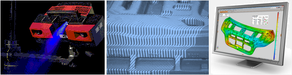 Om optisch scannen mogelijk te maken gebruiken wij onze GOM ATOS III industriële optische 3D-scanner. Met behulp van deze scanner kunnen er contactloos en snel nauwkeurige hoge resolutie scans gemaakt worden. Optisch scannen is zeer geschikt voor het 3D-meten op locatie van industriële componenten zoals plaatstaal onderdelen, matrijzen en gereedschappen, turbineschoepen, prototypes, spuitgietonderdelen, gietstukken en kunstobjecten. De GOM ATOS III scanner legt de volgende geometrie van het object vast in een dichte puntenwolk of gepolygoniseerde mesh. Per opname genereert onze optische scanner maar liefst 16 miljoen punten, waardoor er een zeer gedetailleerd digitaal model ontstaat.