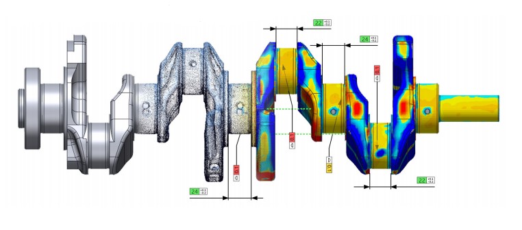 Diverse aspecten kunnen snel gecontroleerd worden in Geomagic control X; nominale maten, geavanceerde GD&T, punten ten opzichte van CAD, etc. Deze data kan vervolgens snel geautomatiseerd in een rapport worden weergegeven.